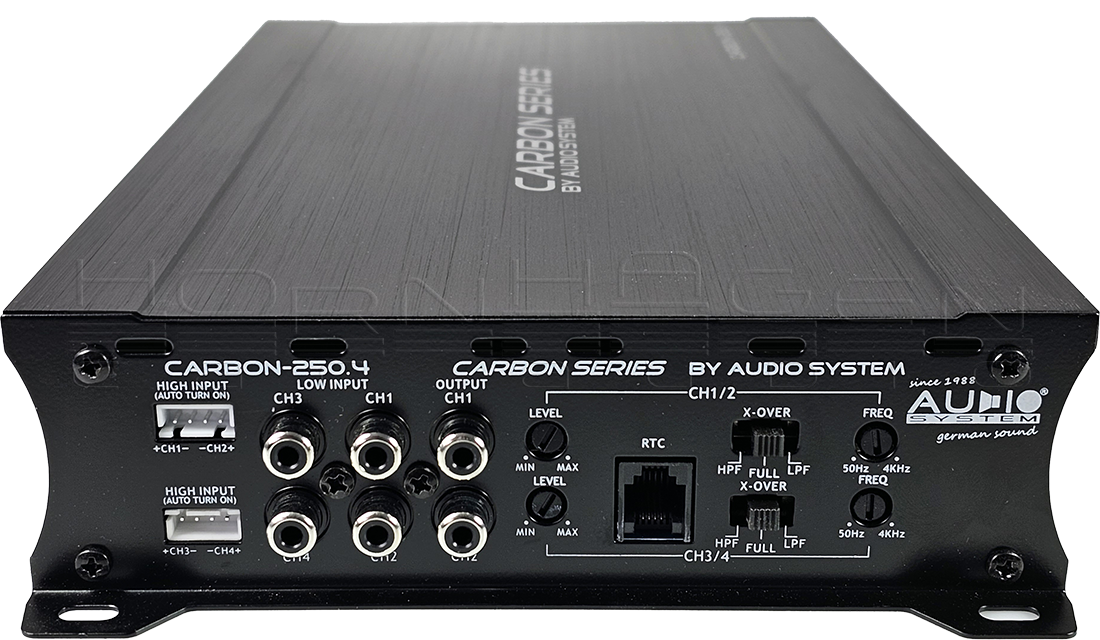 - Dedykowany wzmacniacz 4-kanałowy Carbon 250.4 o mocy 4x65/110W RMS.