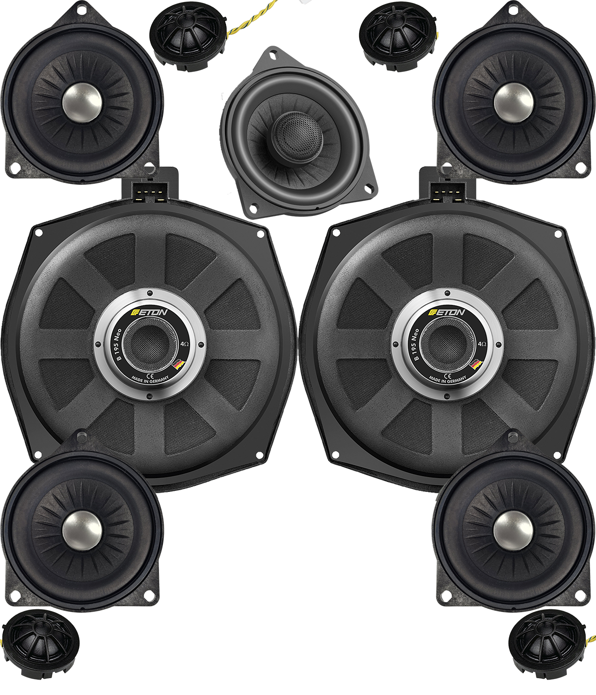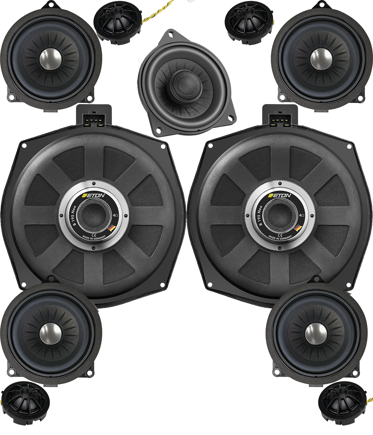 ETON BMW E60 E70 E71 E65 F01 F07 FULL PACK 11-drożny Przód+tył+suby+central B100N B195NEO 3-drożny zest. 200mm BMW E60 E61 E65 E70 E71
