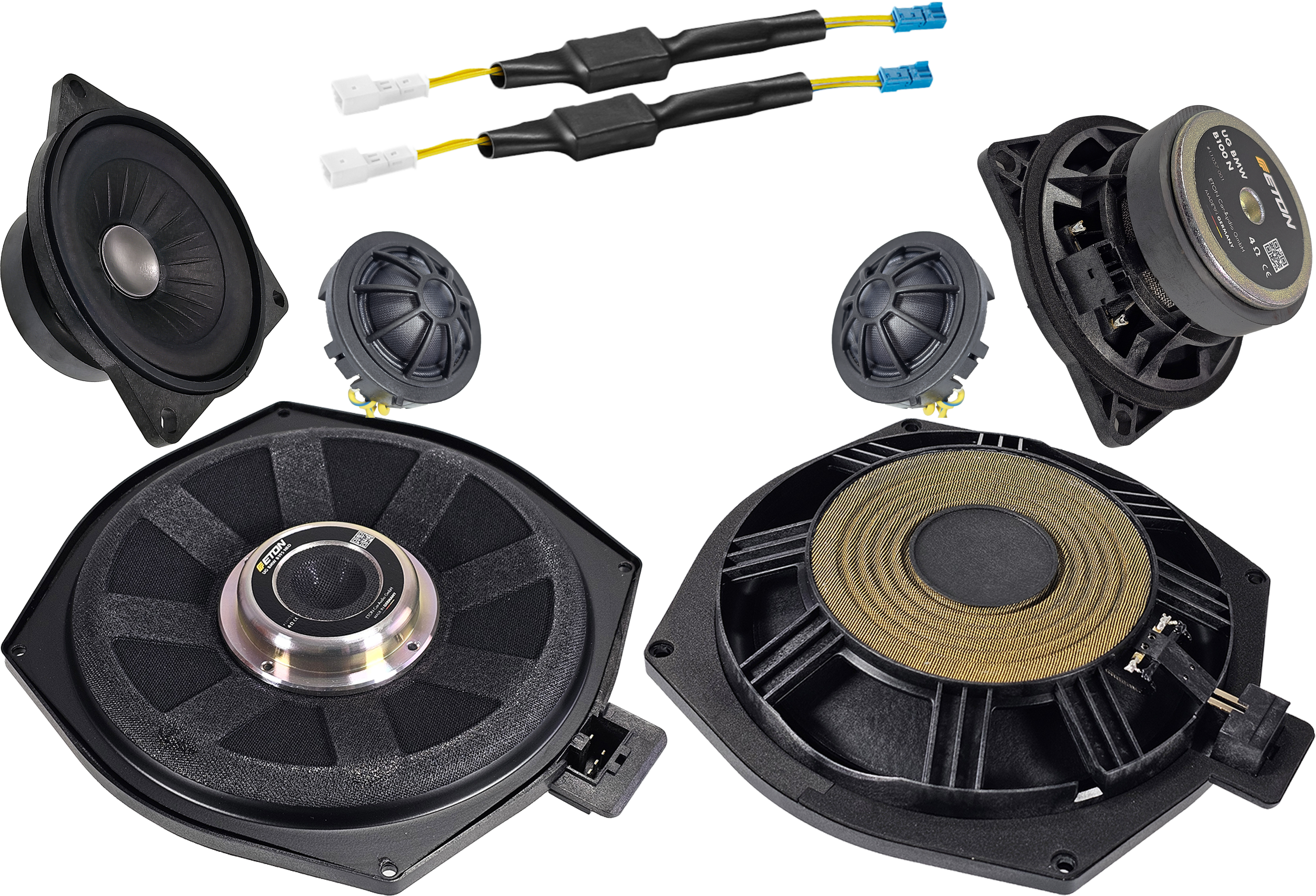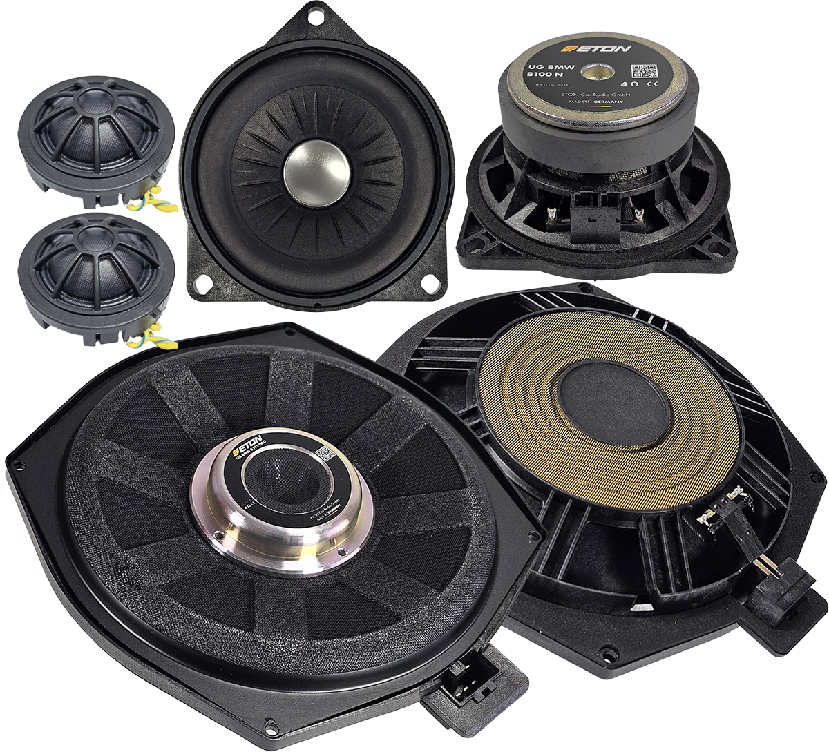- Eton B100N zestaw odseparowany (2 midrange i 2 tweetery ze zwrotnicami) dedykowany w tylną półkę lub podsufitkę (E61, F07)