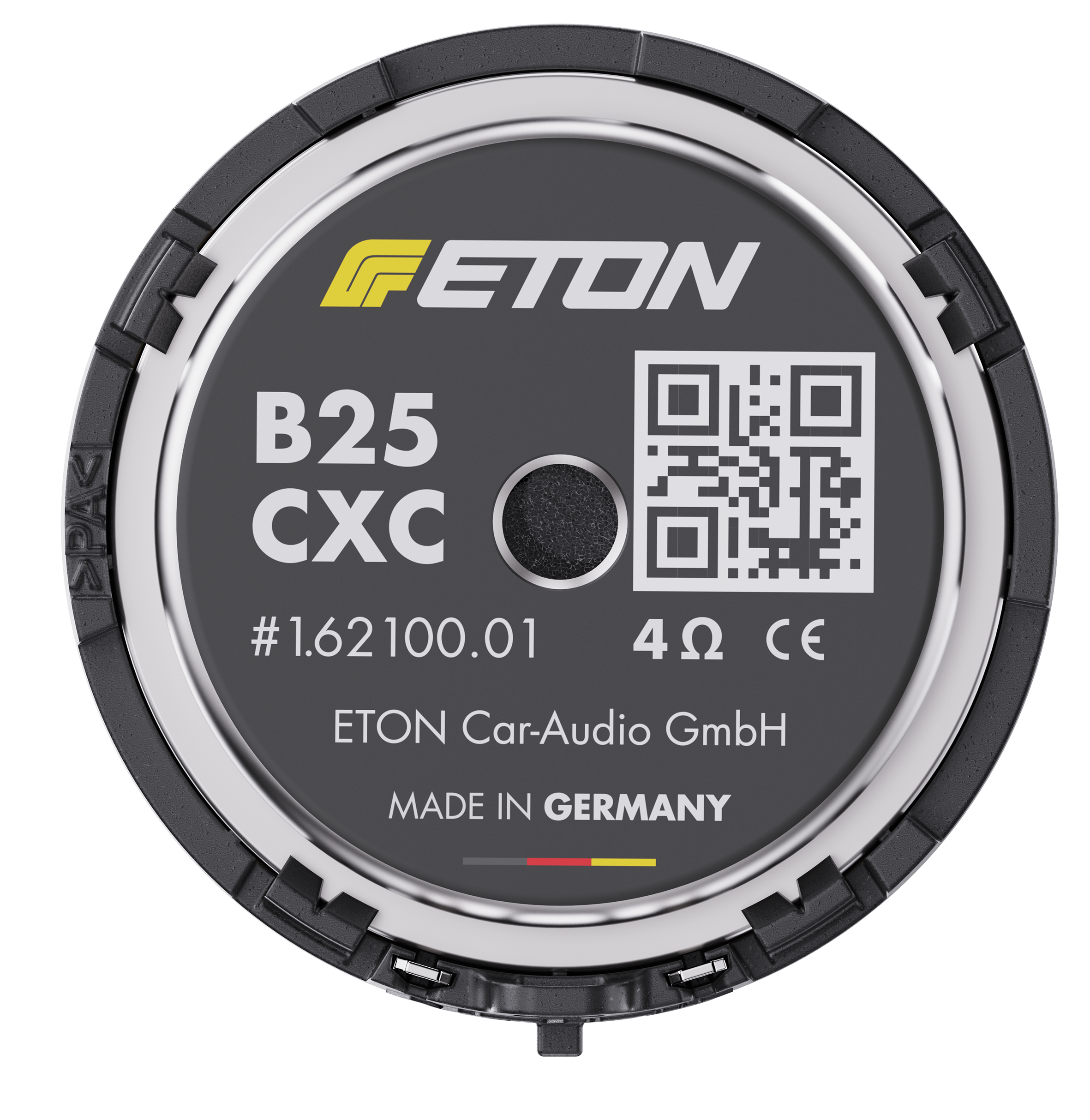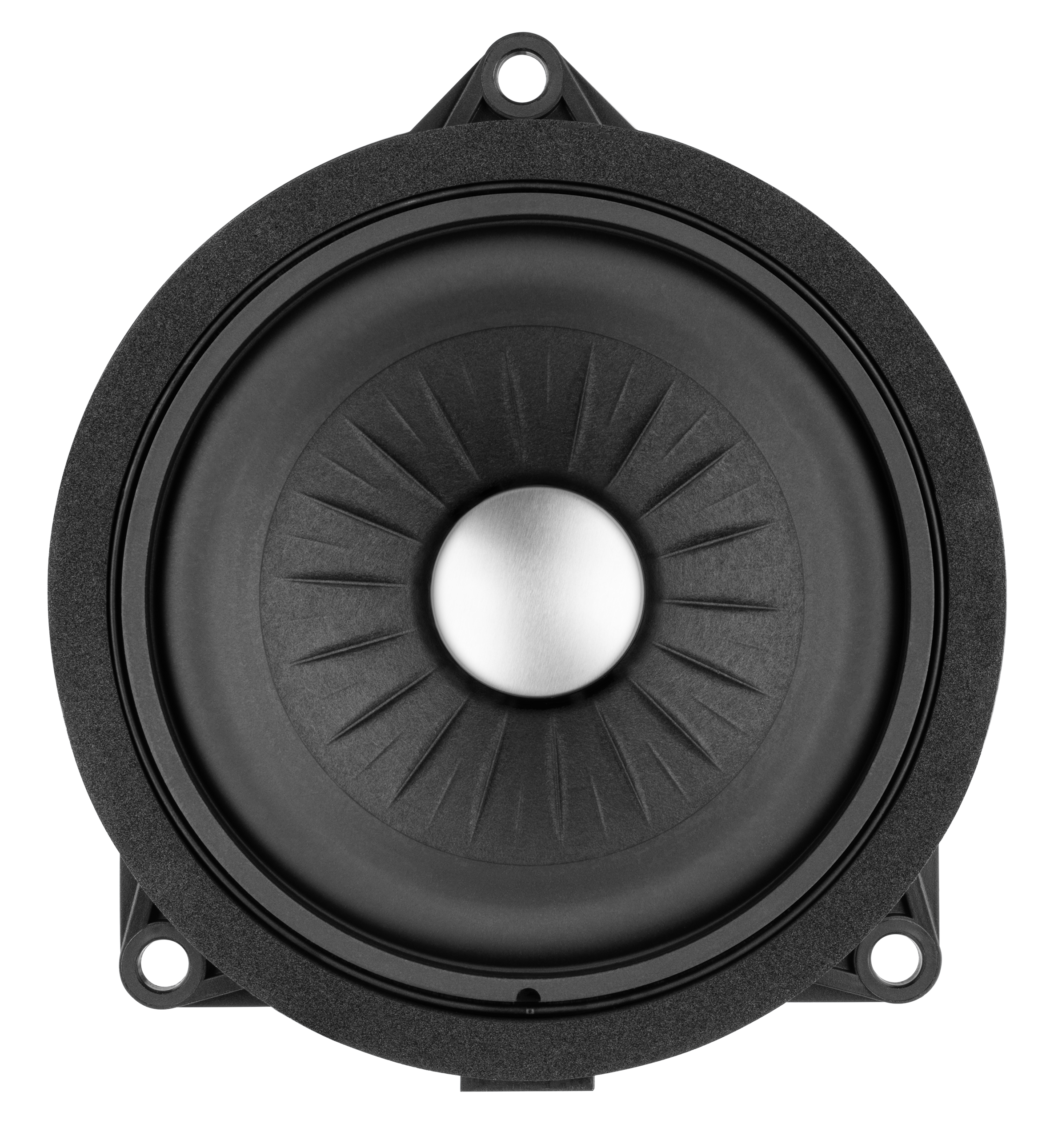 Brzmienie 2-drożnego systemu głośników jest specjalnie zoptymalizowane pod kątem akustyki pojazdu. 10-centymetrowy / 4-calowy głośnik niskotonowo-średniotonowy posiada wzmocnioną żebrami papierową membranę z aluminiową osłoną przeciwpyłową i zachwyca ciepłym, zróżnicowanym i czystym dźwiękiem oraz doskonałą reprodukcją wokali i instrumentów akustycznych. Mocny magnes neodymowy zapewnia niezbędną moc. Magnes ma duży otwór rdzeniowy, który wspomaga chłodzenie i zwiększa wytrzymałość.