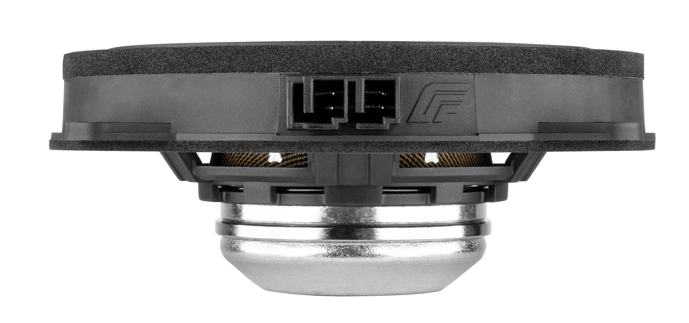 Wysokiej jakości kosz niskotonowego wzmocniony włóknem szklanym (kosz W) jest idealnie dopasowany – łącznie z gniazdami przyłączeniowymi. Całkowicie przeprojektowano jednostkę napędową: wyjątkowo płaski magnes neodymowy ułatwia modernizację i umożliwia montaż typu plug & play nawet w ograniczonych przestrzeniach montażowych w drzwiach aktualnych modeli samochodów. Dzięki temu instalacja jest dziecinnie prosta, bez dodatkowych pierścieni adapterowych lub wtyczek, oczywiście przy zachowaniu oryginalnego wyglądu.