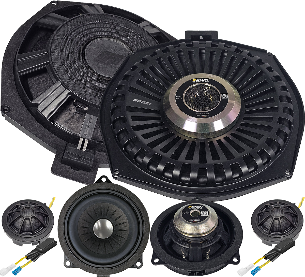 Każdy, kto ma wysokie wymagania dotyczące jakości dźwięku i szuka idealnie dopasowanych głośników, znajdzie coś dla siebie w ofercie ETON. System komponentowy UG BMW 10 W idealnie integruje się z pojazdem i jest kompatybilny z modelami BMW i MINI, w których głośnik niskotonowo-średniotonowy jest przykręcany od przodu do wewnętrznej blachy drzwi. Model W jest przeznaczony do montażu w pomieszczeniach wilgotnych, posiada podwyższoną ramkę kosza i podwójne uszczelnienie w kierunku wewnętrznej blachy drzwi i tapicerki.