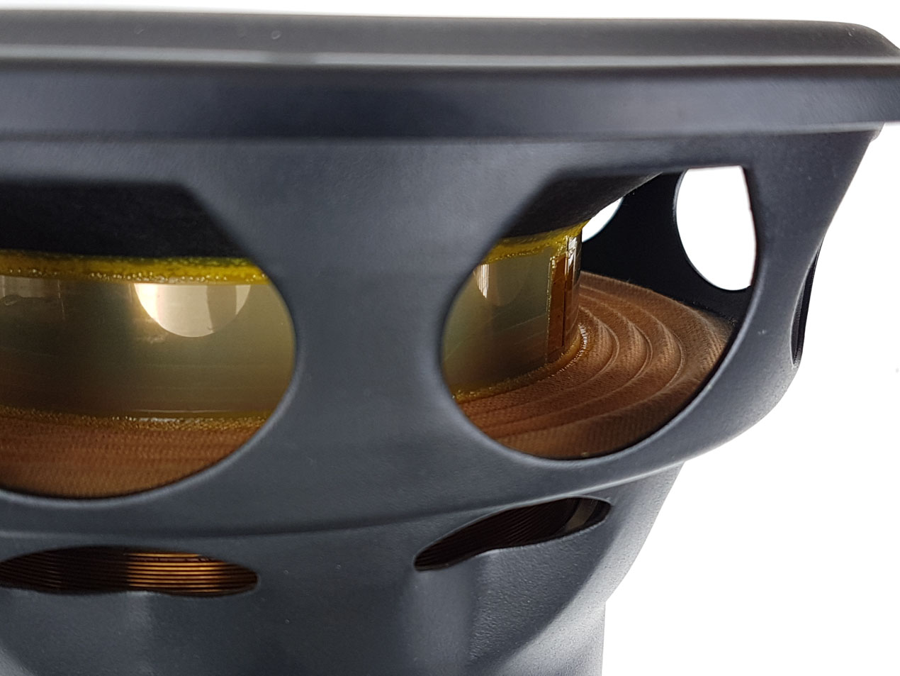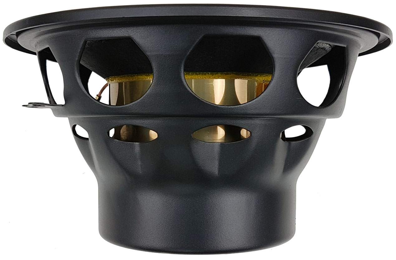 Wyjątkowo sztywna i lekka cewka z tytanowym karkasem poprawia dynamikę przy mniejszych zniekształceniach i zwiększonej możliwości obciążenia mocą.