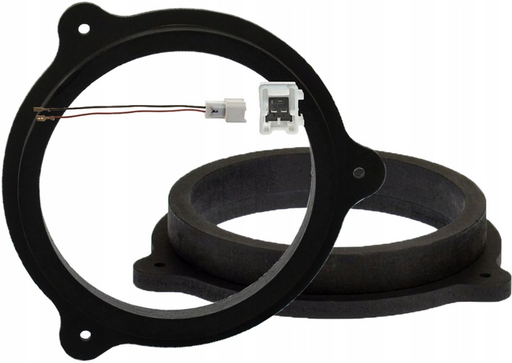 W komplecie dystanse MDF (impregnowane i lakierowane) i wiązki PnP do wooferów, do oryginalnej instalacji, zakończone konektorami do głośników